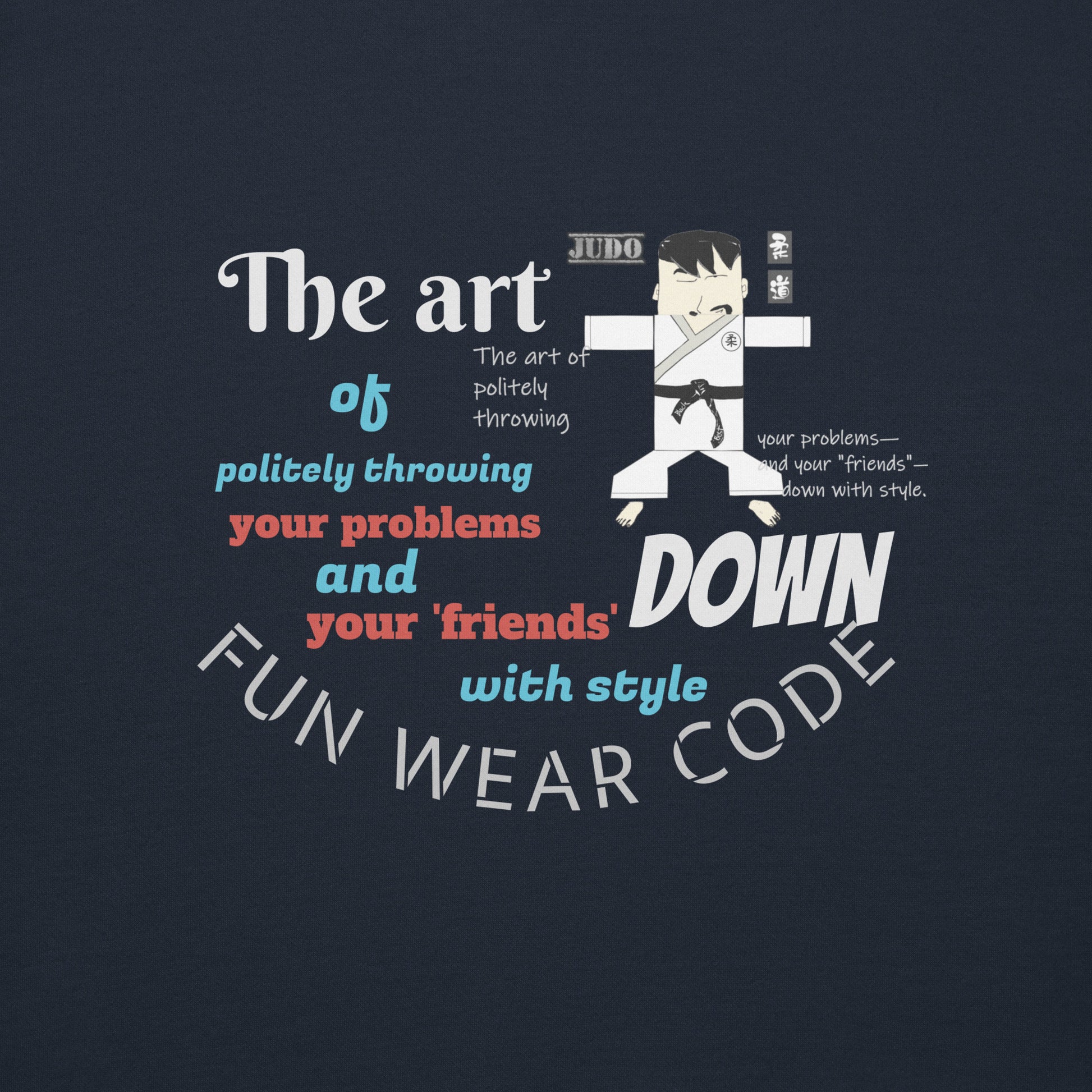 遊び心のある柔道をテーマにしたTシャツは、単なる衣服ではありません。柔道の肉体的な側面を超えた、より深い哲学的概念を体現しています。相手を投げることに重点を置いた武道と捉えられがちな柔道ですが、人生の困難を乗り越えるメタファーとしても機能することがあります。このTシャツは、着る人に人間関係の複雑さや、人生が遭遇する様々な困難について深く考えさせるでしょう。