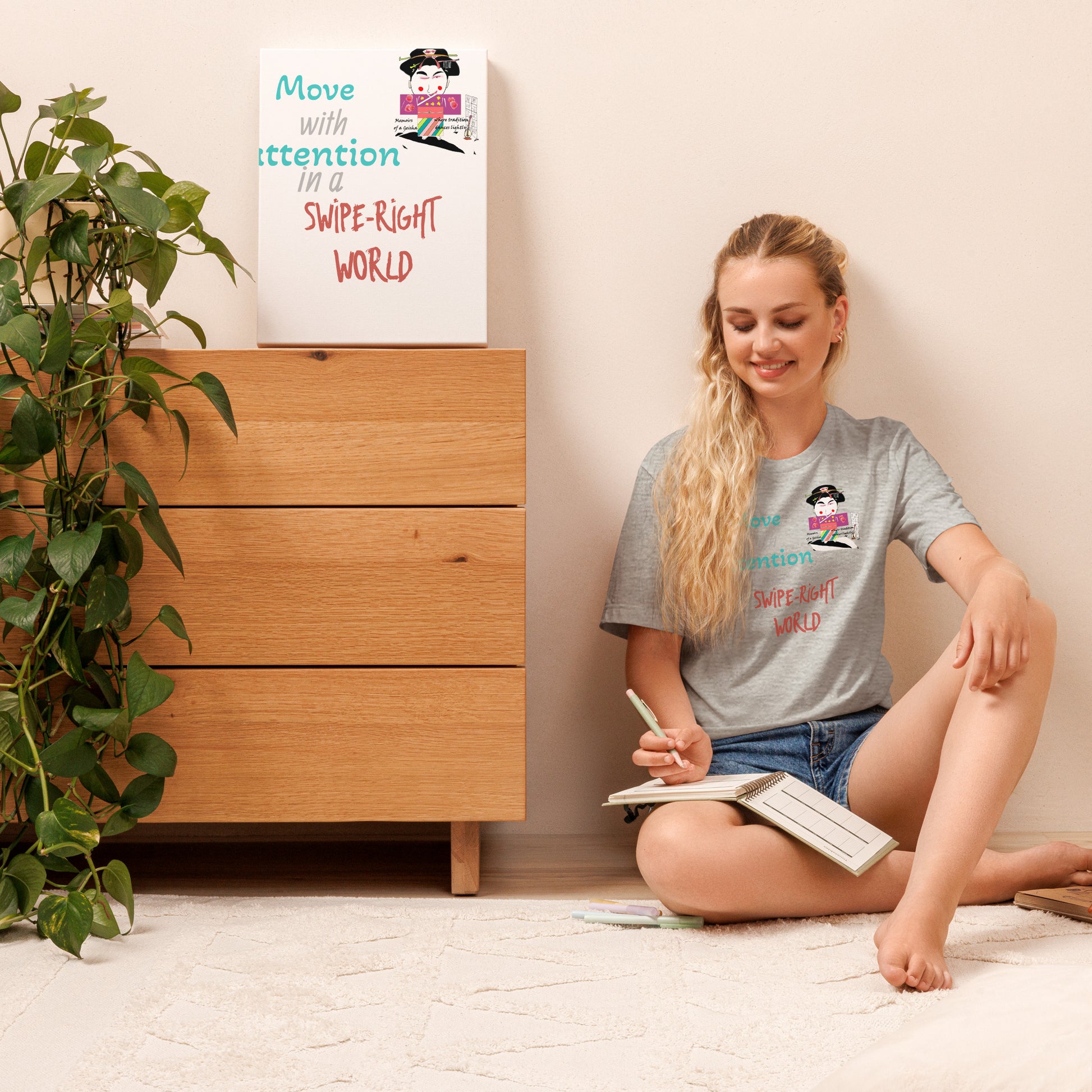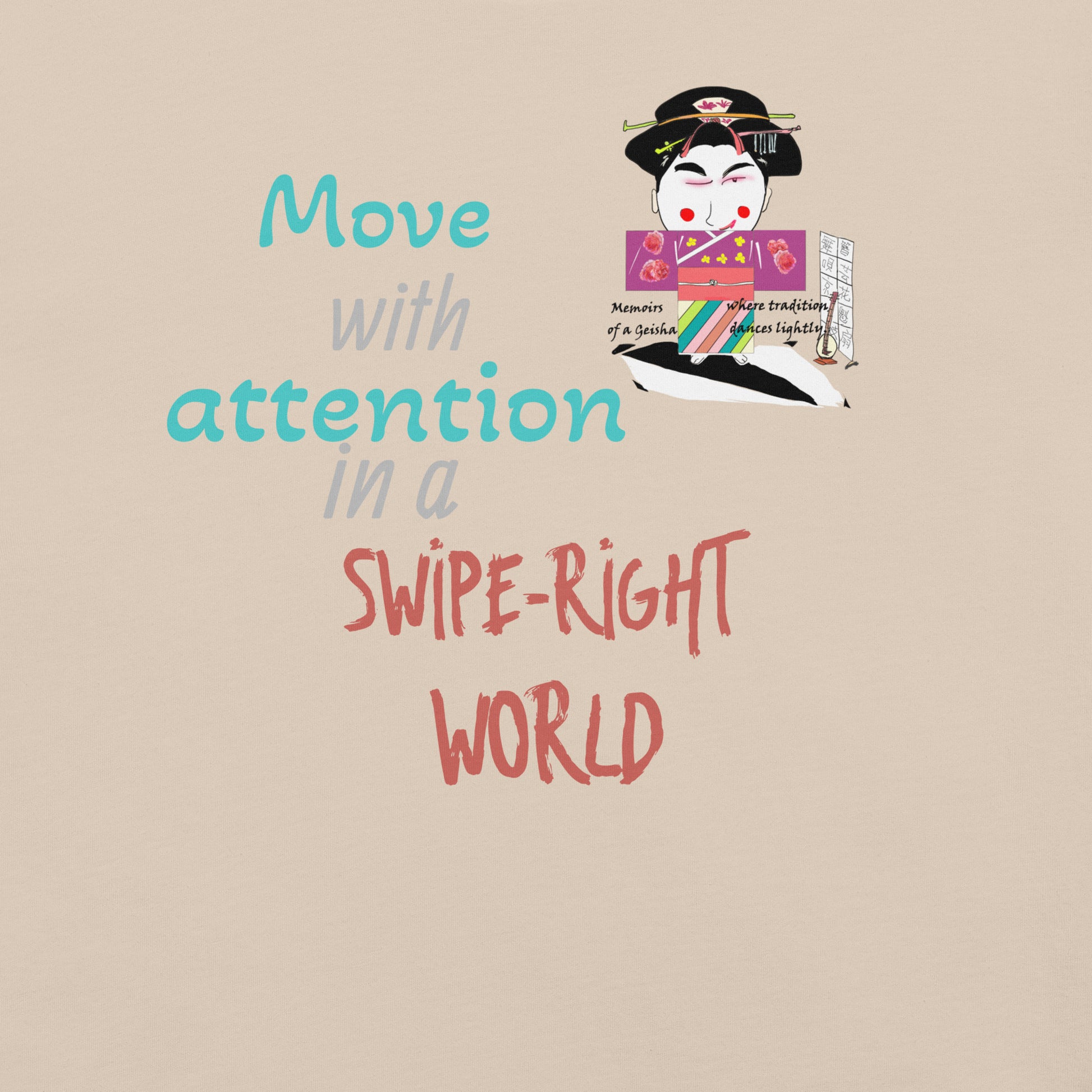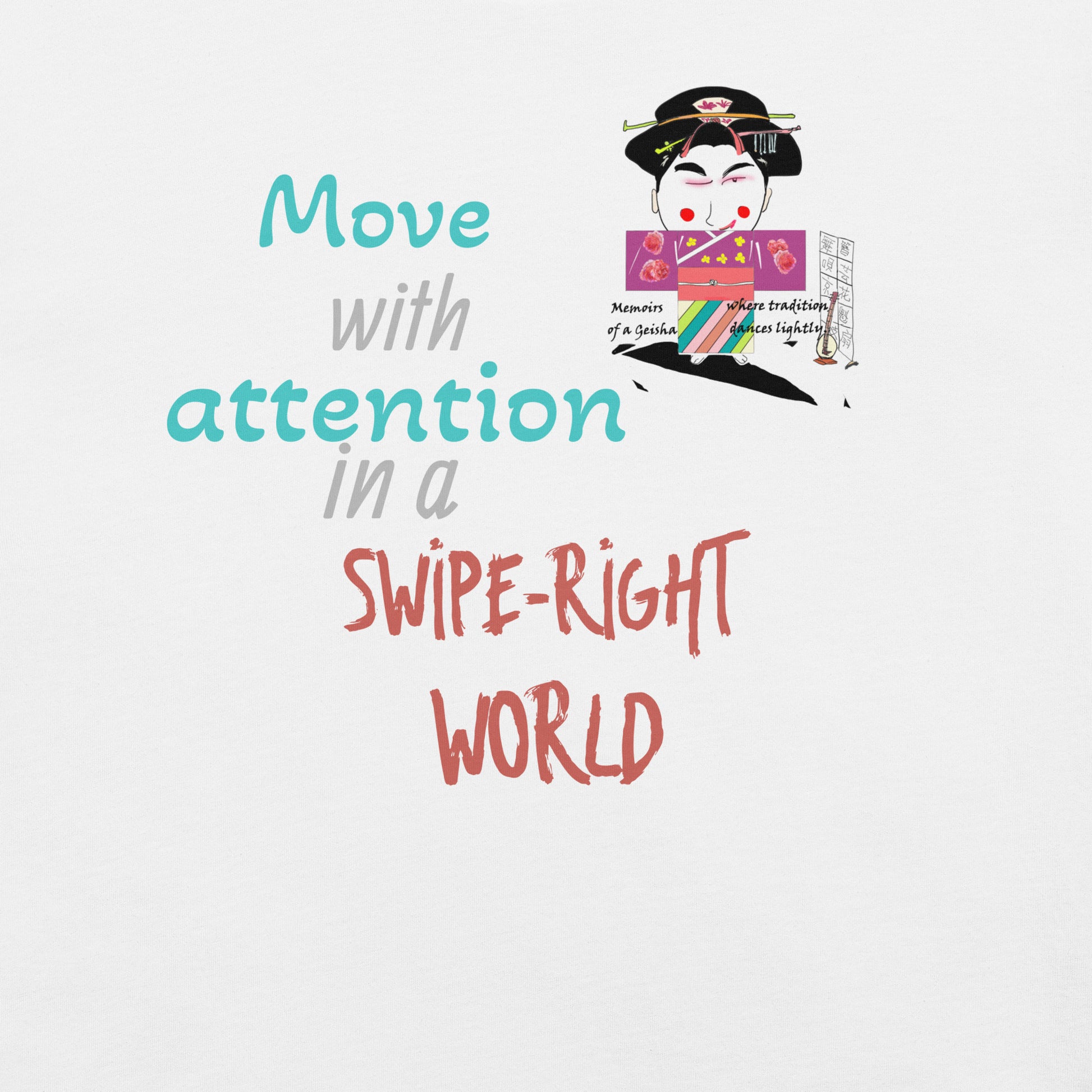 芸者Tシャツの制作に着手した際、私たちは長年多くの人々を魅了し、インスピレーションを与えてきた芸者の本質を捉えたいと考えました。そのビジョンを理解するために、デザイナーに「芸者」を思い浮かべると何が思い浮かぶかを尋ねました。すると、すぐに浮かんだ答えは2005年に公開された象徴的な映画『SAYURI』でした。この映画の傑作は、日本の芸者の感動的な物語を美しく描き、彼女の苦悩と勝利を描いています。