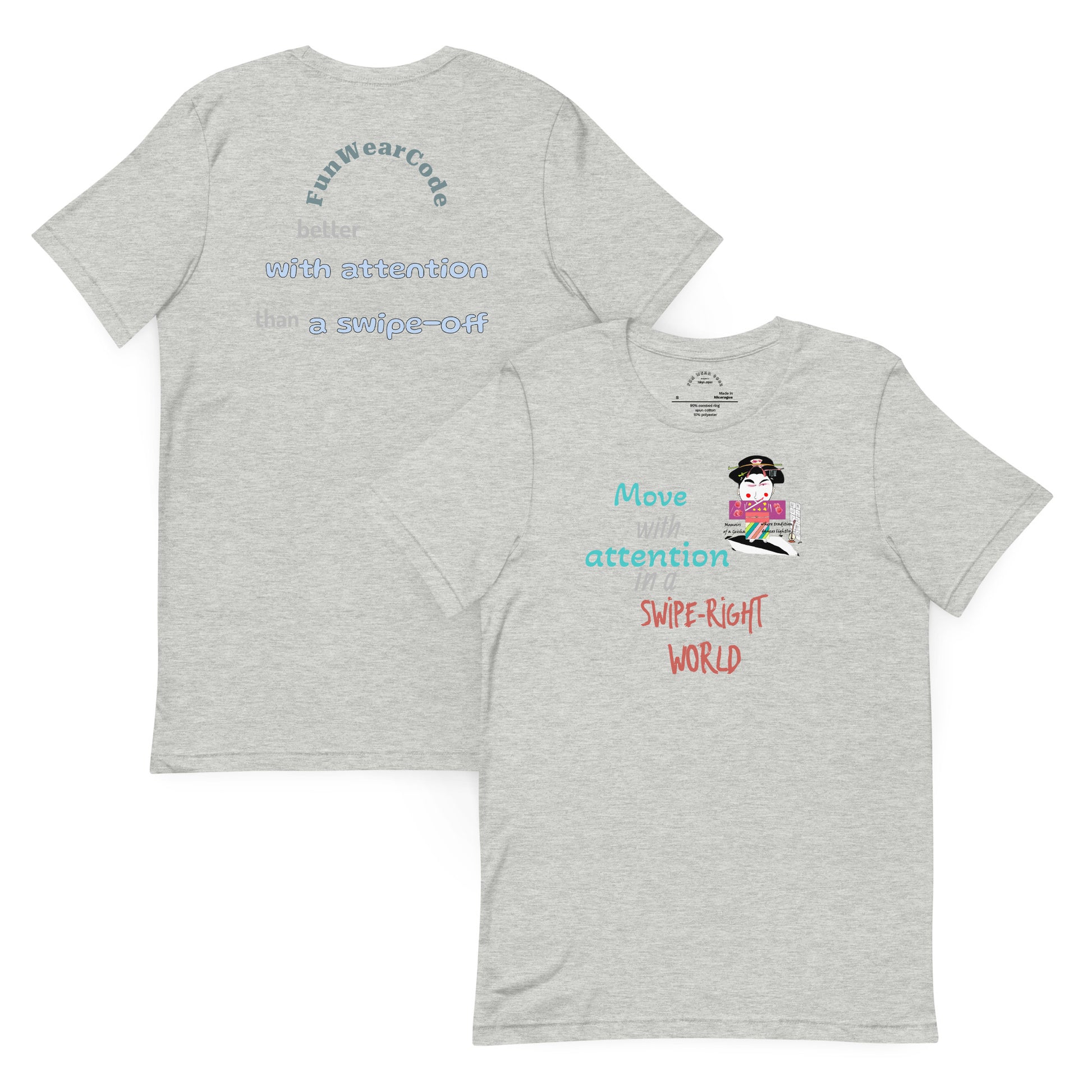 文化遺産と現代的なセンスをシームレスに融合させた、洗練されたユニセックスTシャツで、毎日のワードローブをワンランクアップさせましょう。軽量コットン素材を使用し、妥協のない快適さを提供します。日本の伝統と、高く評価された映画『SAYURI』からインスピレーションを得たデザインは、古典的な文化的モチーフをモダンで遊び心のあるレンズを通して表現しています。服に込められた思慮深いデザインと意味深いストーリーテリングを重視する方にぴったりのこのTシャツは、万能な定番アイテムであると同時に、会話のきっかけにもなります。重ね着にも一枚で着こなすのにも最適で、カジュアルなシーンにさりげないエレガンスを添えます。