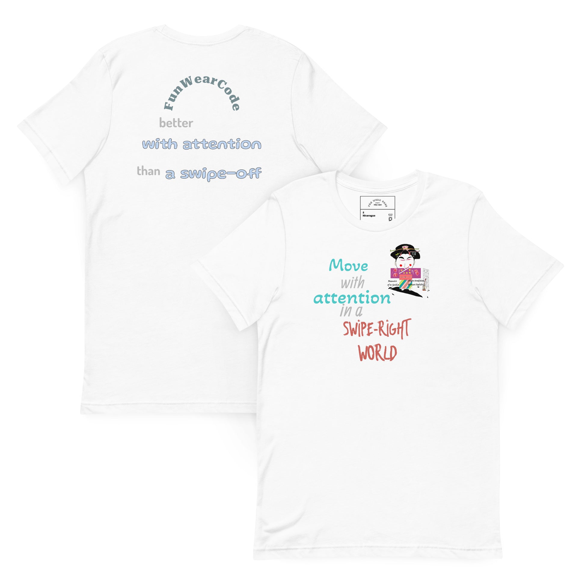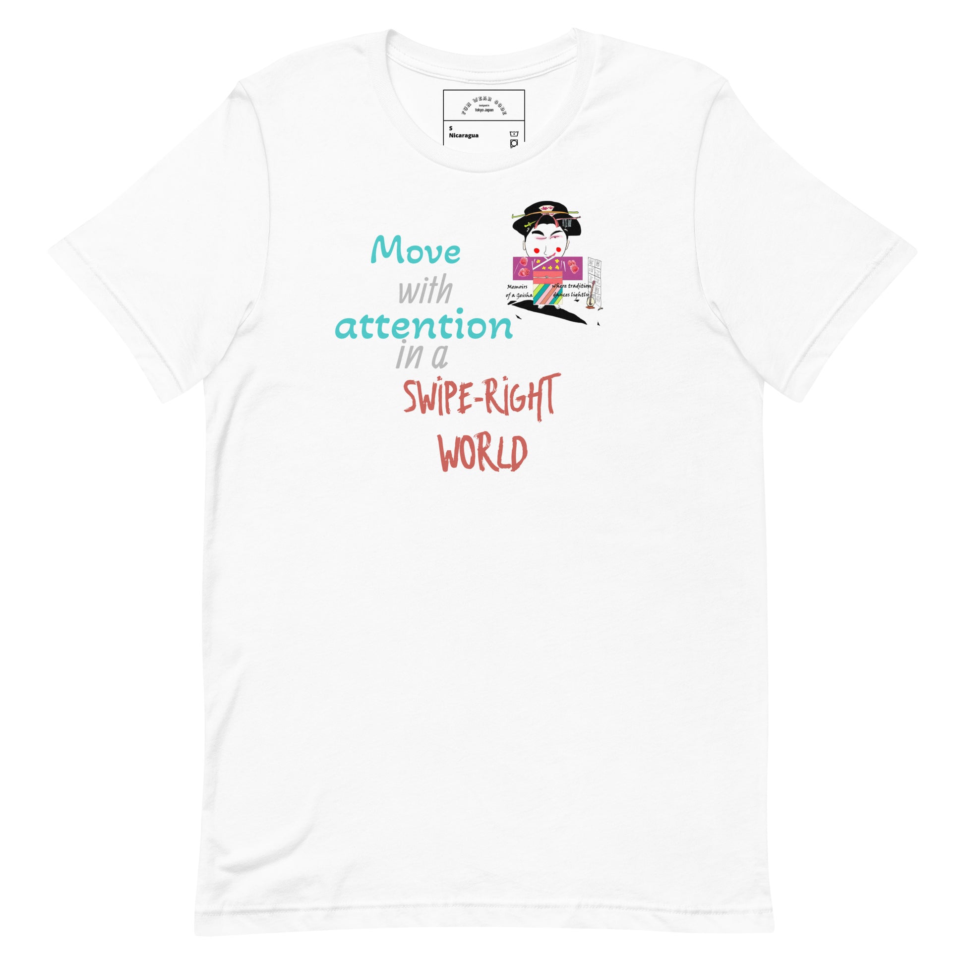 芸者というイメージは、特に若い世代の間で、今もなお神秘性と魅力を想起させます。このことを念頭に、私たちはこの象徴的な人物へのオマージュとして、また、あなたのワードローブに遊び心と好奇心を添える「Geisha」Tシャツをデザインしました。このTシャツは、芸者が象徴する豊かな文化遺産を受け入れながら、個性を表現するための手段となることを願っています。